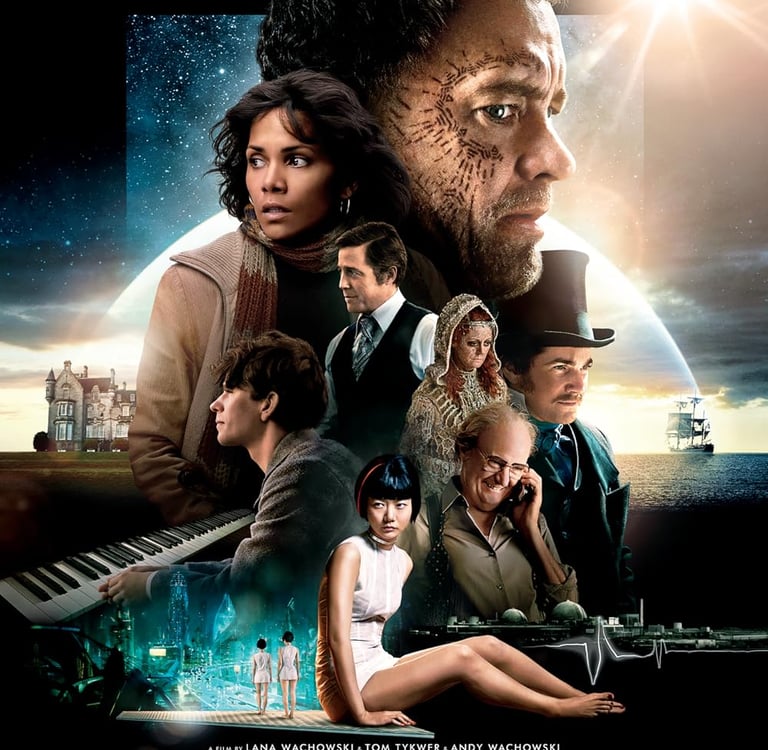 Cloud Atlas spans multiple timelines and explores how individual actions impact the future. The movie weaves together themes of karma, interconnectedness, and moral responsibility.