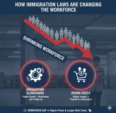 When immigration laws change—restricting worker inflow or tightening hiring rules—these industries feel the pressure immediately. And when industries slow down, the effects quickly spread to supply chains, retailers, and households.